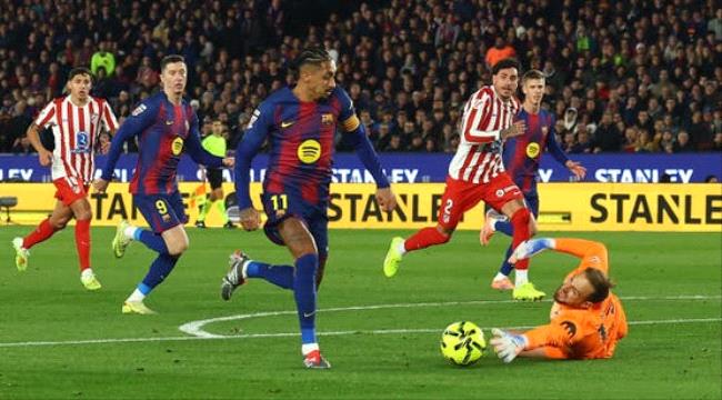 وافتتح أتلتيكو التسجيل في الدقيقة 19 عبر أليكس باينا من هجمة مرتدة سريعة، لكن رافينيا أدرك التعادل بعد سبع دقائق بتسديدة من داخل المنطقة بعد تمريرة حاسمة من بيدري.