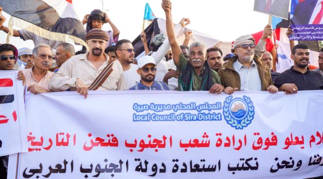 شارك أبناء مديرية صيرة، يتقدمهم مدير عام المديرية الدكتور محمود بن جرادي، في الاعتصام المفتوح الذي أُقيم في ساحة العروض بالعاصمة عدن، للمطالبة باستقلا...